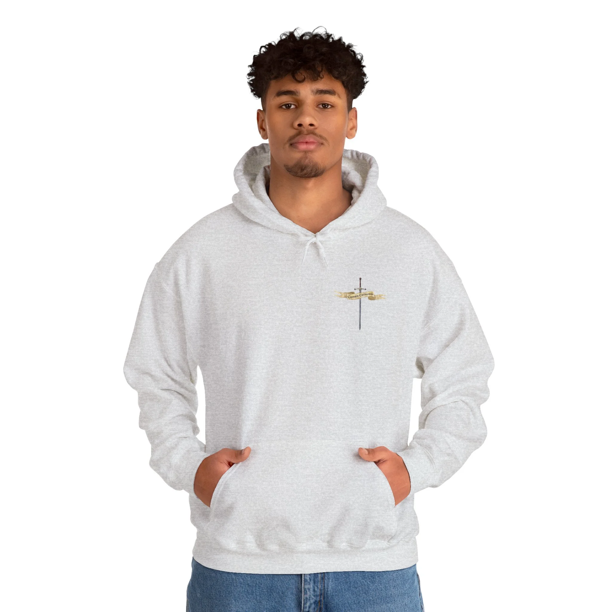 Made with a warm cotton-poly blend, this hoodie is soft, durable, and perfect for everyday wear. The classic fit, pouch pocket, and color-matched drawstrings make it both practical and stylish while keeping your focus on the message of redemption.